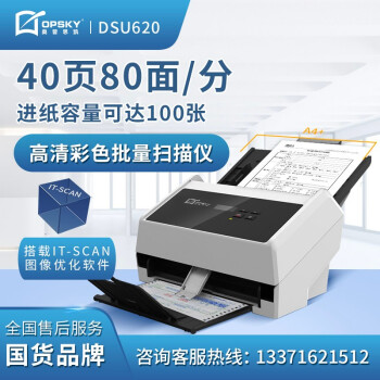 奧普思凱(OPSKY) 饋紙式掃描儀高清彩色雙面連續(xù)大容量自動(dòng)進(jìn)紙辦公設(shè)備發(fā)票文檔多介質(zhì)掃描 DSU620 掃描儀(40頁80面/分鐘)